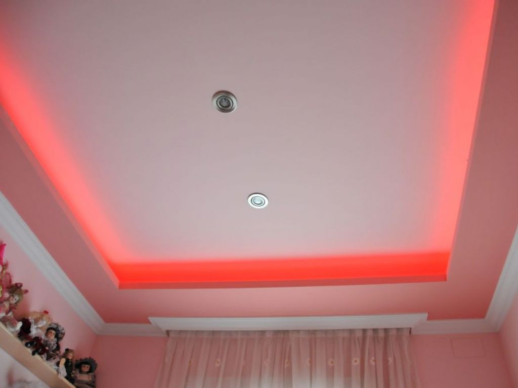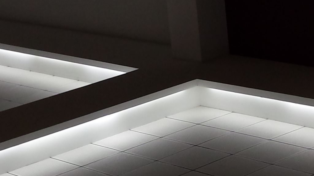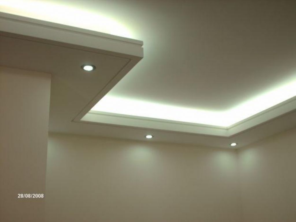 Techos lisos y flotantes con bandeja de luz indirecta.